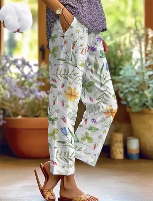 Damskie spodnie na co dzień z bawełny lnianej
