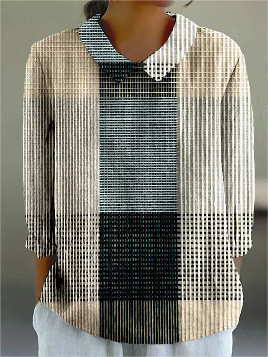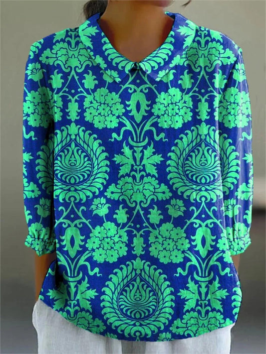 Damska koszula z długim rękawem i klapami, z nadrukiem-2