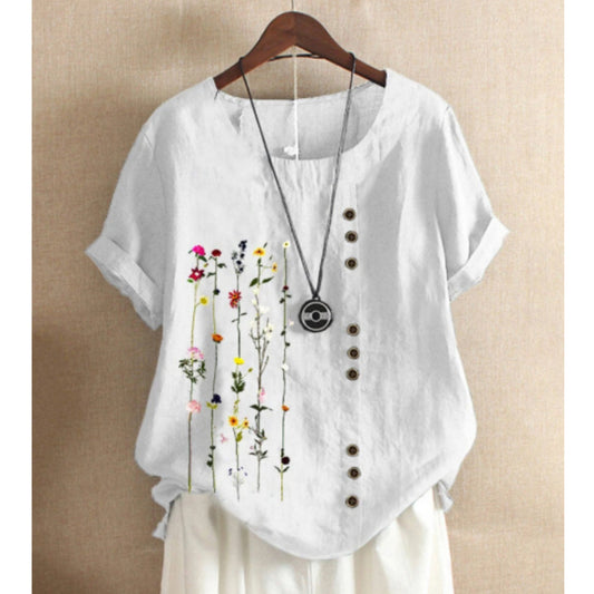 Elegancka i wygodna bawełniana bluzka z pięknym kolorowym wzorem kwiatowym