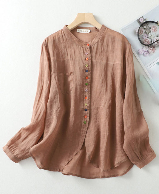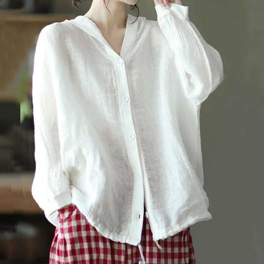 Luźna koszula z długim rękawem w stylu vintage, wykonana z bawełny i lnu
