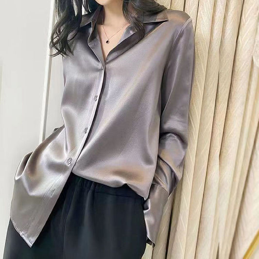 Koszula z imitacji jedwabiu octanowego w jednolitym kolorze, satyna wysokiej jakości, luźno układająca się i odporna na zagniecenia