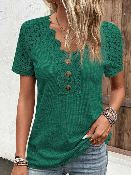 Modna koszula w jednolitym kolorze z krótkim rękawem i dekoltem w kształcie litery V
