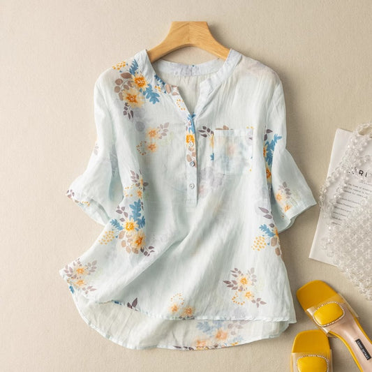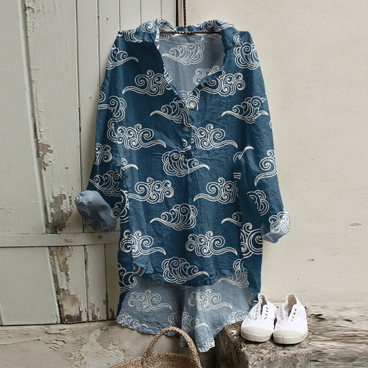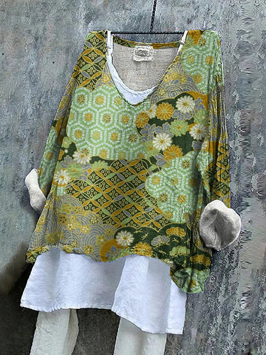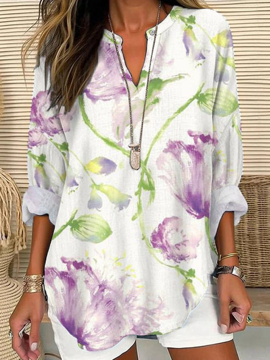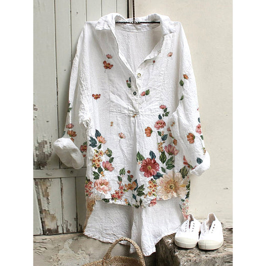 Koszula z długim rękawem w stylu vintage z nadrukiem botanicznym F
