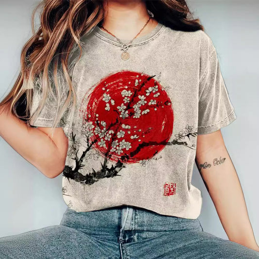 Koszula z krótkim rękawem w stylu japońskiej sztuki Sunrise Plum Blossom