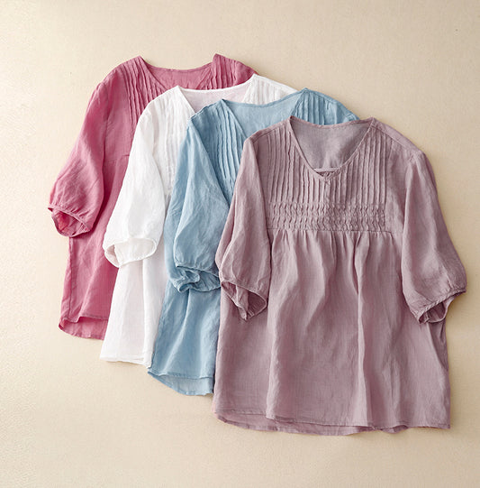 Plisowana koszula z luźnymi rękawami i dekoltem w kształcie litery V