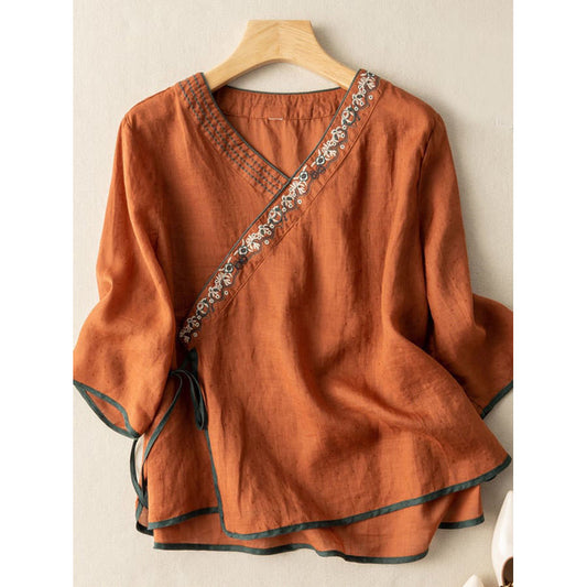 Bawełniana, artystyczna, dopasowana kolorystycznie, luźna koszula z haftem