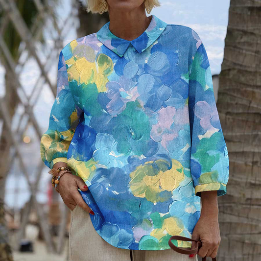 Elegancka i wygodna, kolorowa koszula z długim rękawem, efekt malarstwa olejnego