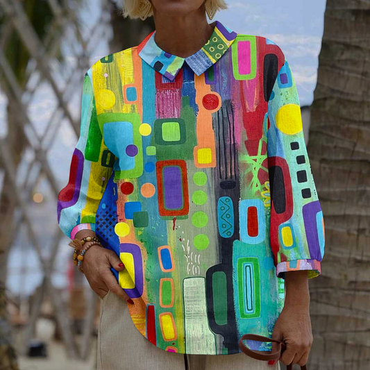 Elegancka i wygodna koszula z długim rękawem o nieregularnym geometrycznym wzorze