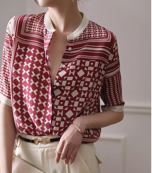 Damska patchworkowa koszula z dekoltem w kształcie litery V