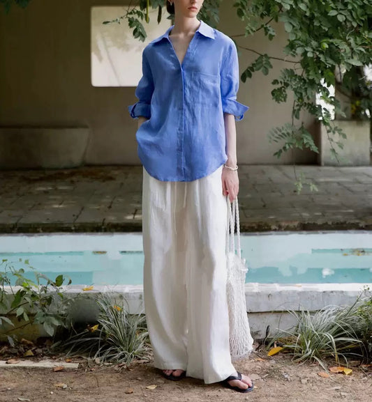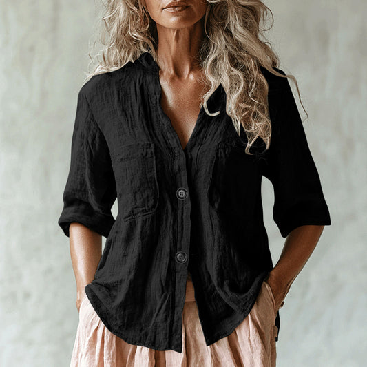 Elegancka i swobodna damska koszula z bawełny i lnu, zapinana na guziki, z długim rękawem, w wielu kolorach