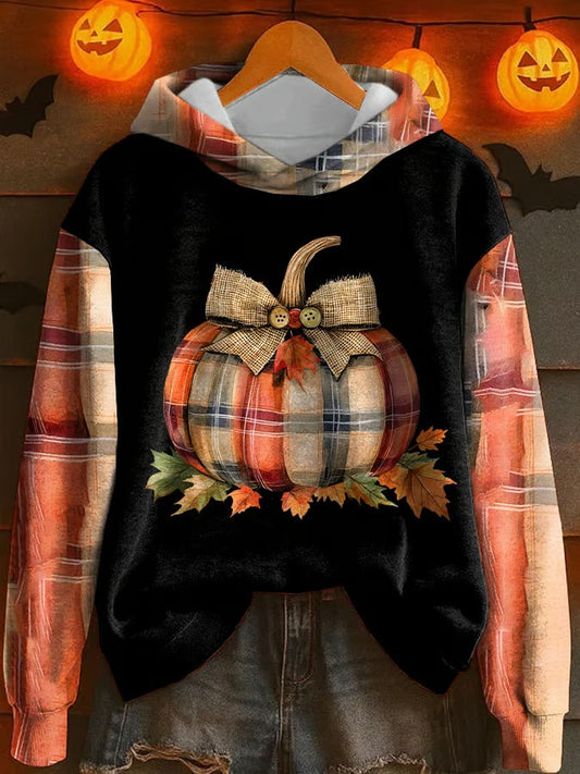 Klasyczna i wygodna bluza z kapturem w kolorową kratę i wzór dyni
