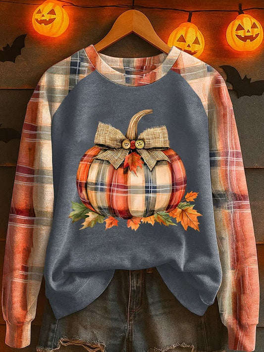 Klasyczna i wygodna bluza w kratkę z wzorem dyni
