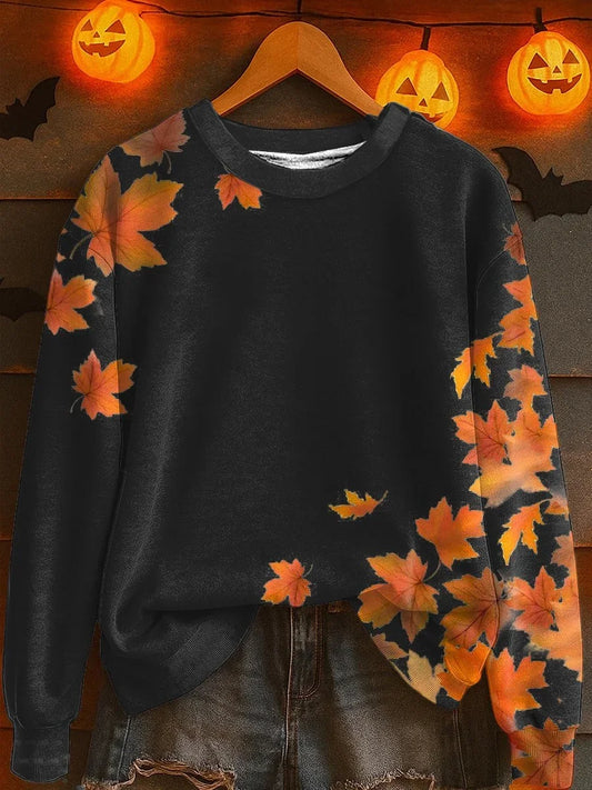 Klasyczna i wygodna bluza z pięknym wzorem pomarańczowego liścia klonu