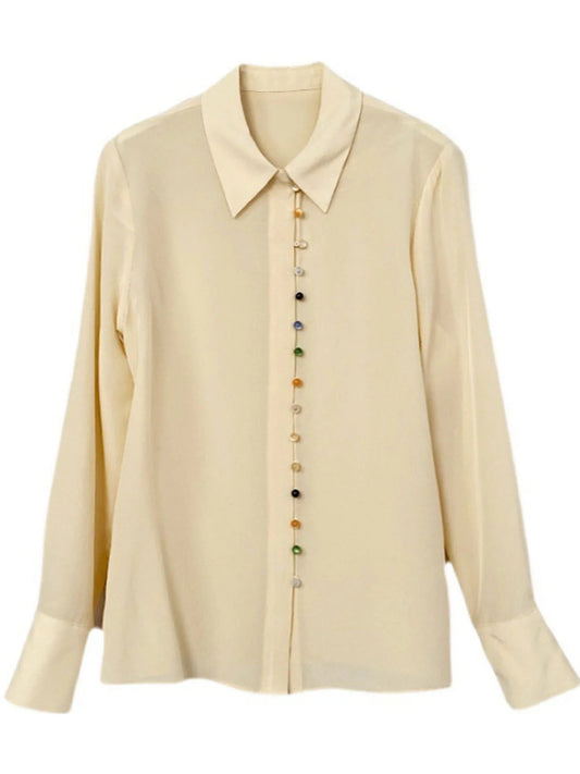Koszula damska z długim rękawem wykonana z gładkiej bawełny, zapinana na kolorowe guziki