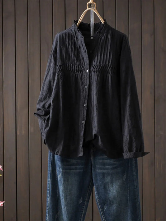 Elegancka i wygodna koszula z długim rękawem i marszczonym dekoltem w serek
