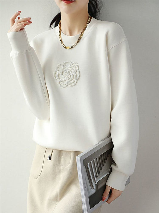 Elegancka i wygodna biała bluza ozdobiona pięknym żakardowym wzorem 3D z kwiatowym wzorem.