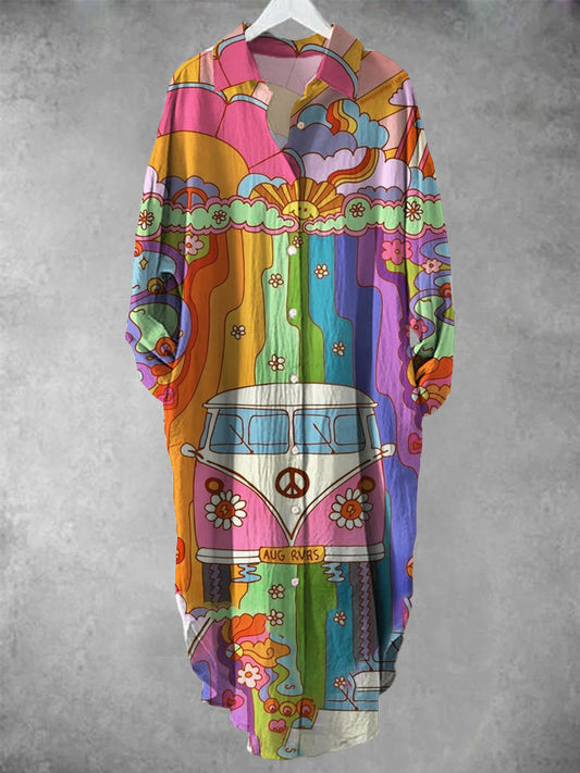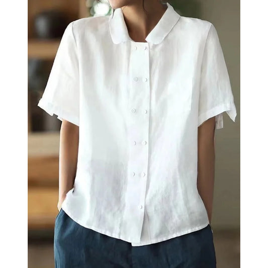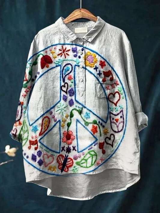 Damska koszula w stylu vintage z nadrukiem pokoju, swobodna, bawełniana i lniana koszula