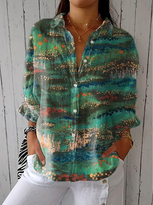 Damska koszula z kwiatowym nadrukiem na co dzień, wykonana z bawełny i lnu