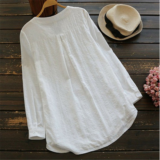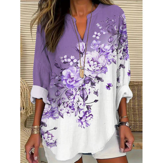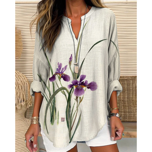 Luźna koszula z długim rękawem i dekoltem w kształcie litery V