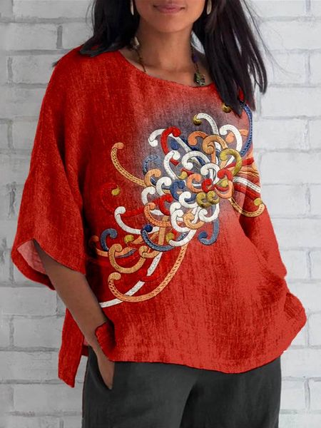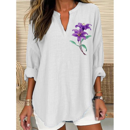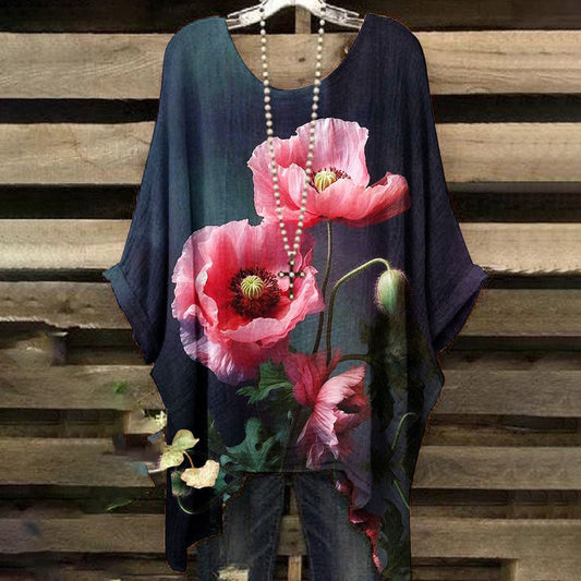 Damski koszula top na co dzień z nadrukiem w czerwone kwiaty 03