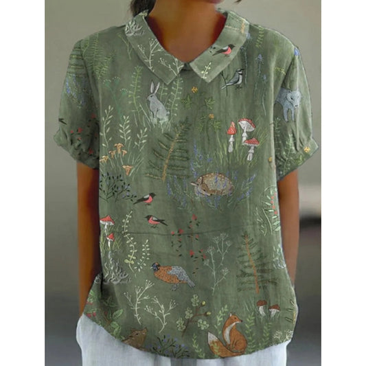 Damska koszula z krótkim rękawem i nadrukiem w stylu retro B