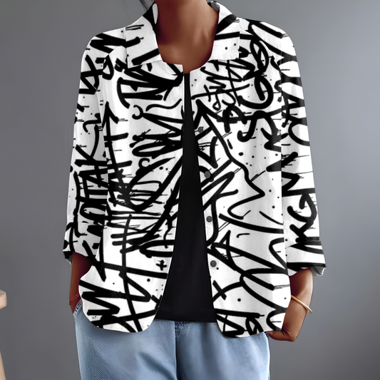 Elegancka i wygodna biała koszula z długim rękawem ze wzorem graffiti