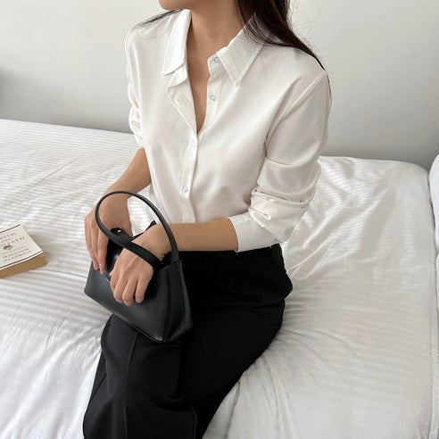 Elegancka bluzka z kołnierzykiem koszulowym, wykonana z gładkiej bawełny