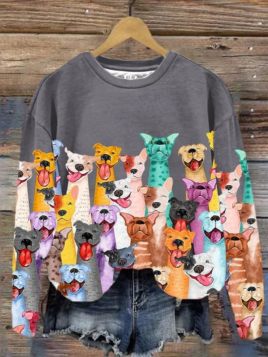 Retro ręcznie malowana bluza z nadrukiem w linie koła