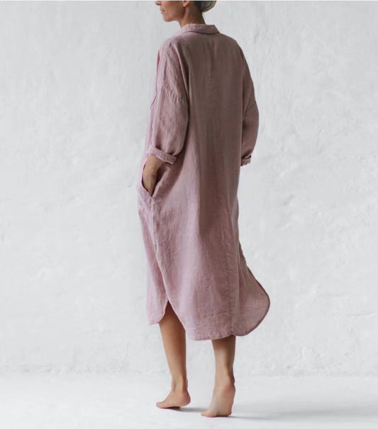 Wygodna, luźna i ładna sukienka z długim rękawem i kołnierzykiem koszulowym