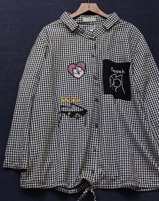 Mała, kratkowana, słodka, wzorzysta, lniana, swobodna koszula z długim rękawem