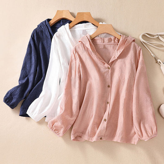 Wygodna, prosta, swobodna koszula z kapturem, długimi rękawami i zapięciem na guziki