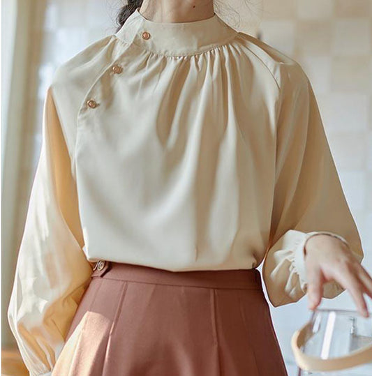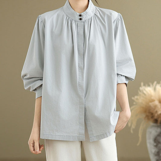 Elegancka, jednokolorowa koszula ze stójką i rękawami typu lampion