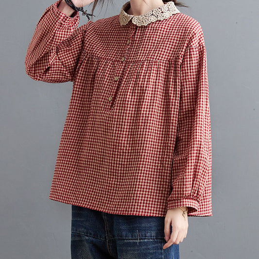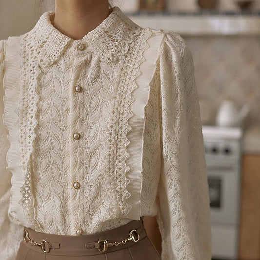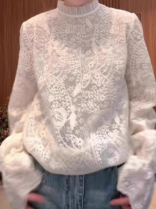 Elegancka i wygodna koszula retro z długim rękawem wykonana z koronki