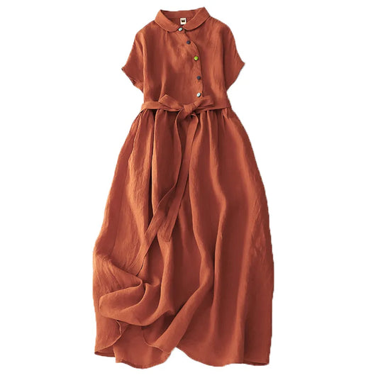 Elegancka i wygodna sukienka bawełniana na co dzień z klapami koszuli i paskiem