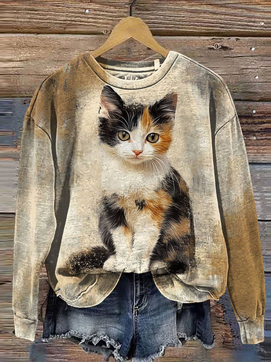 Damska bluza z nadrukiem uroczego kota na co dzień