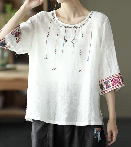 Elegancka i wygodna bawełniana koszula w stylu etnicznym z krótkim rękawem i haftem
