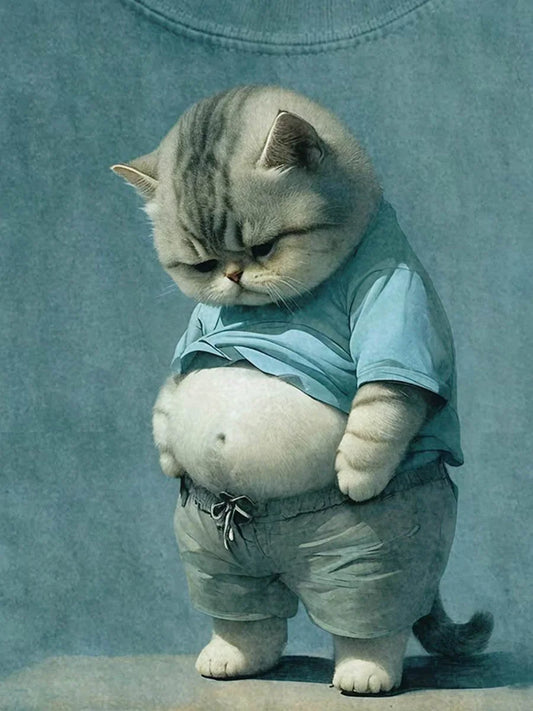 Koszula z krótkim rękawem i nadrukiem z zabawnym grubym kotem unisex