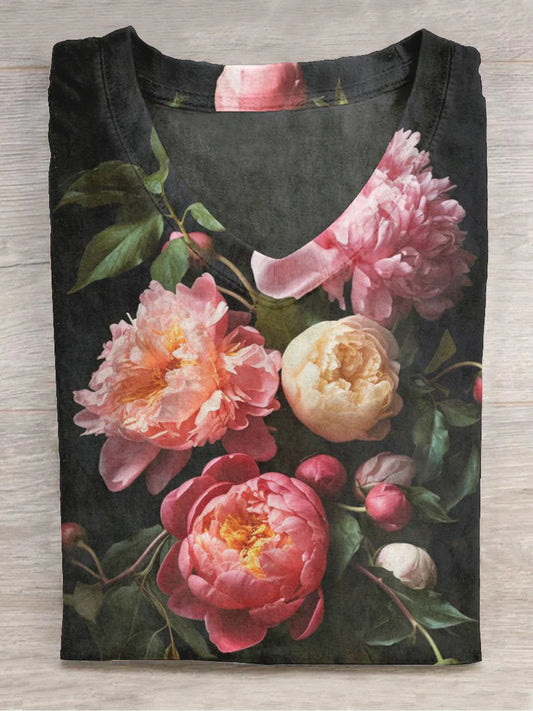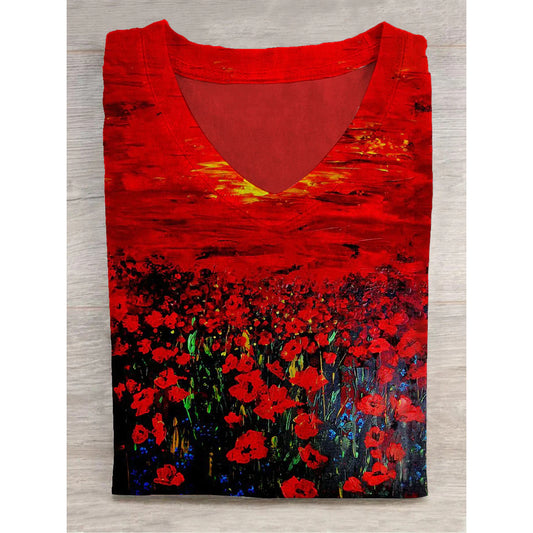 Koszula z krótkim rękawem i nadrukiem kwiatowym, z dekoltem w kształcie litery V unisex