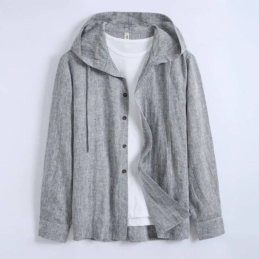 Unisex bawełniany i lniany długi rękaw, lekki kardigan z kapturem