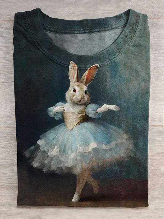koszula unisex z uroczym, zabawnym tańczącym królikiem i nadrukiem artystycznym