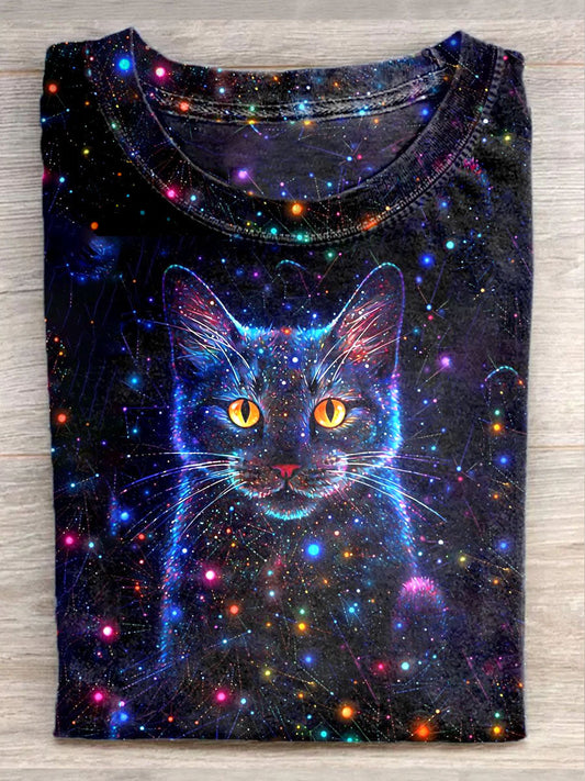 Casualowa koszulka z nadrukiem unisex Fantasy Starry Sky Cat Art Illustration