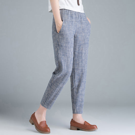 Damskie spodnie na co dzień z bawełny lnianej