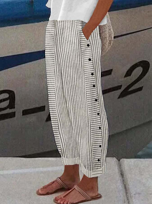 Spodnie z szerokimi nogawkami w stylu retro z bawełny i lnu w paski