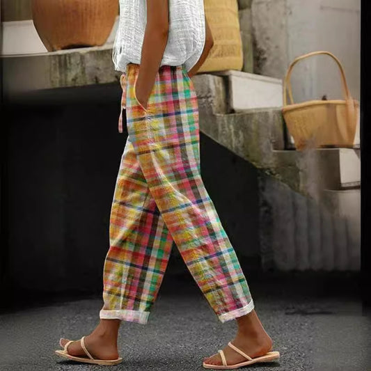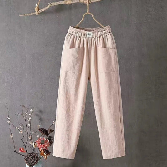 Damskie bawełniane i lniane proste spodnie na co dzień