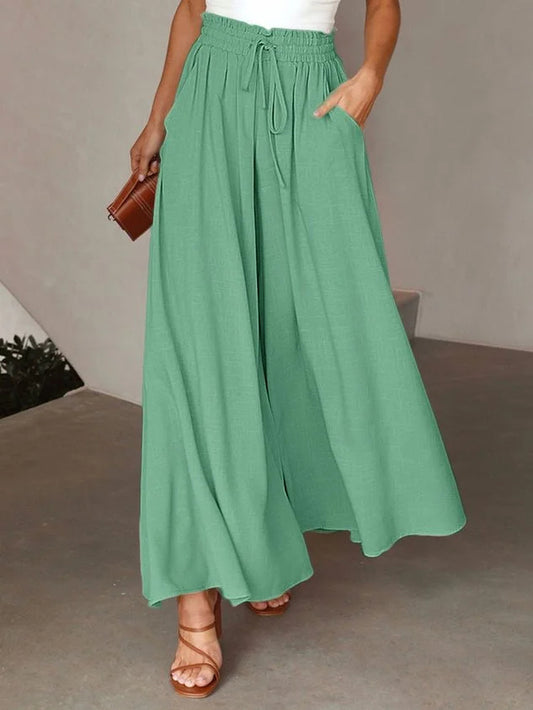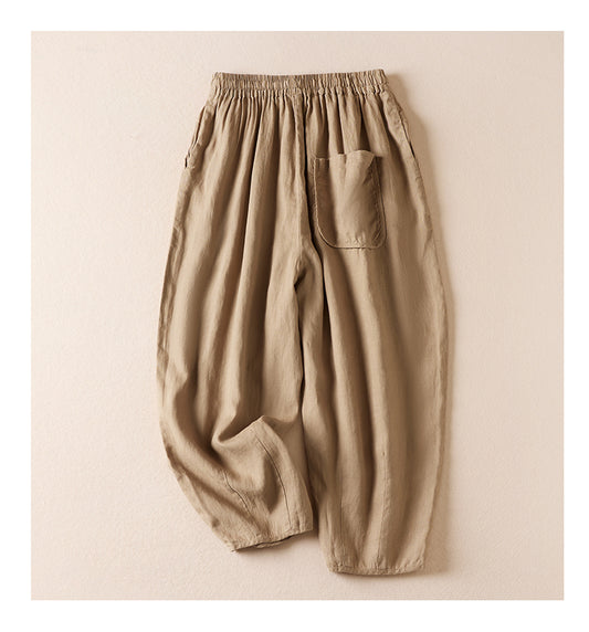 Lniane spodnie z szerokimi nogawkami, luźne, cienkie, zwiewne spodnie dziewięciopunktowe