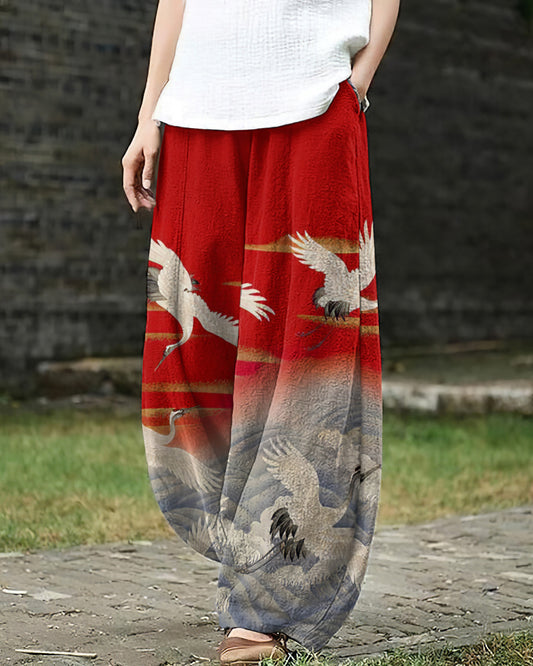 Crane Art Ink And Wash Luźne spodnie na co dzień czerwony