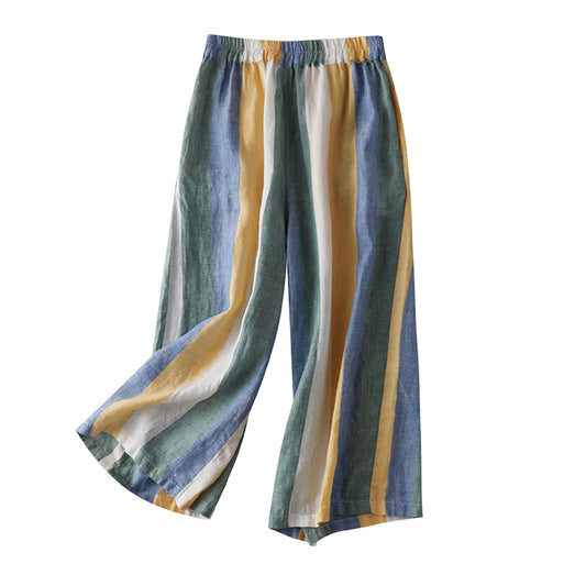 Spodnie z szerokimi nogawkami w stylu retro z bawełny i lnu w paski