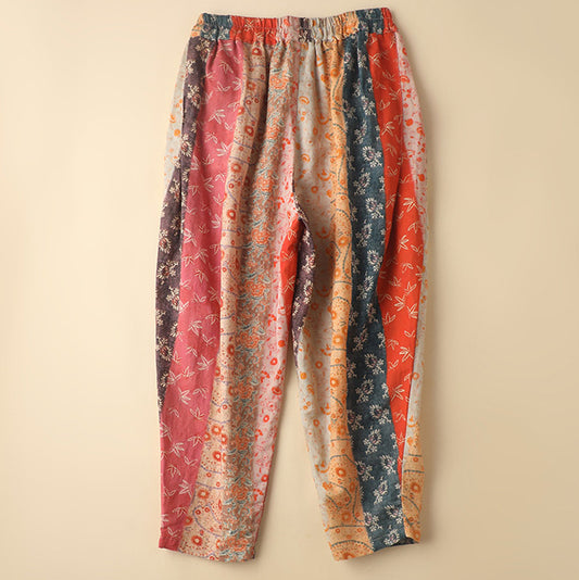 Spodnie casual z bawełnianej lnianej tkaniny z haftem