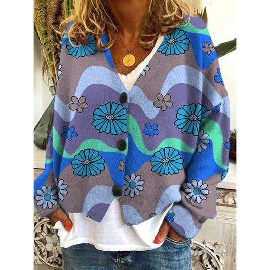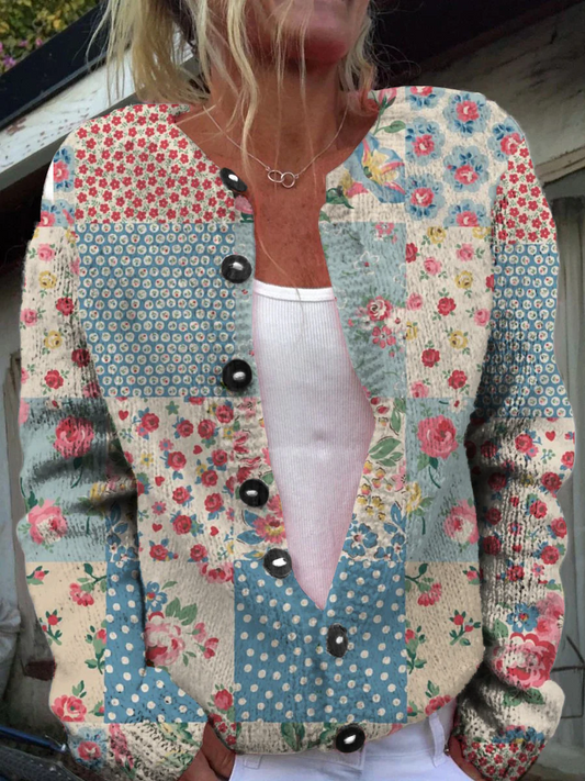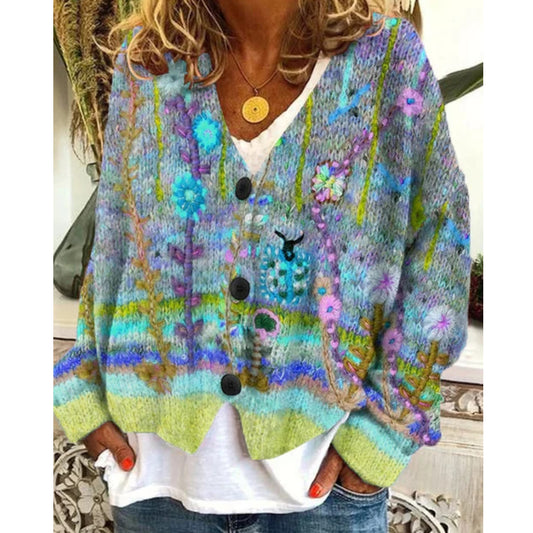 Sweter kardigan w stylu vintage, w stylu boho, z motywem kwiatowym