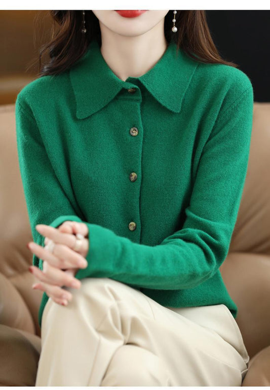 Swobodny i wygodny sweterek z kaszmiru w jednolitym kolorze, zapinany na guziki